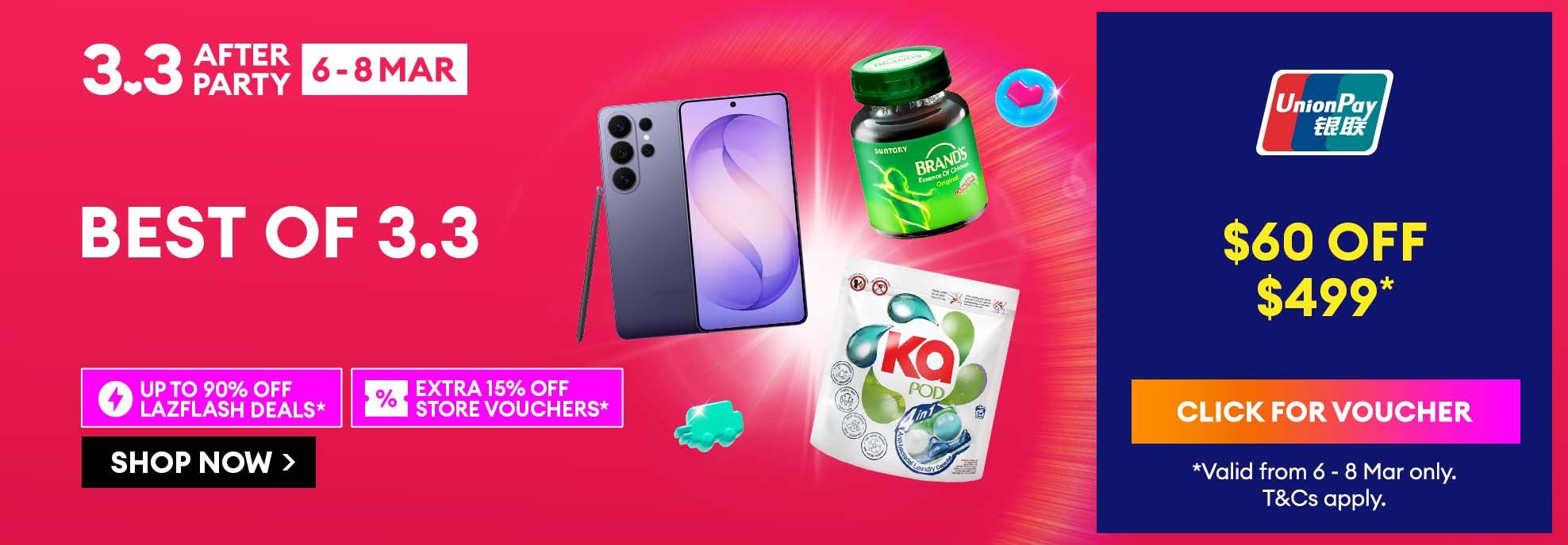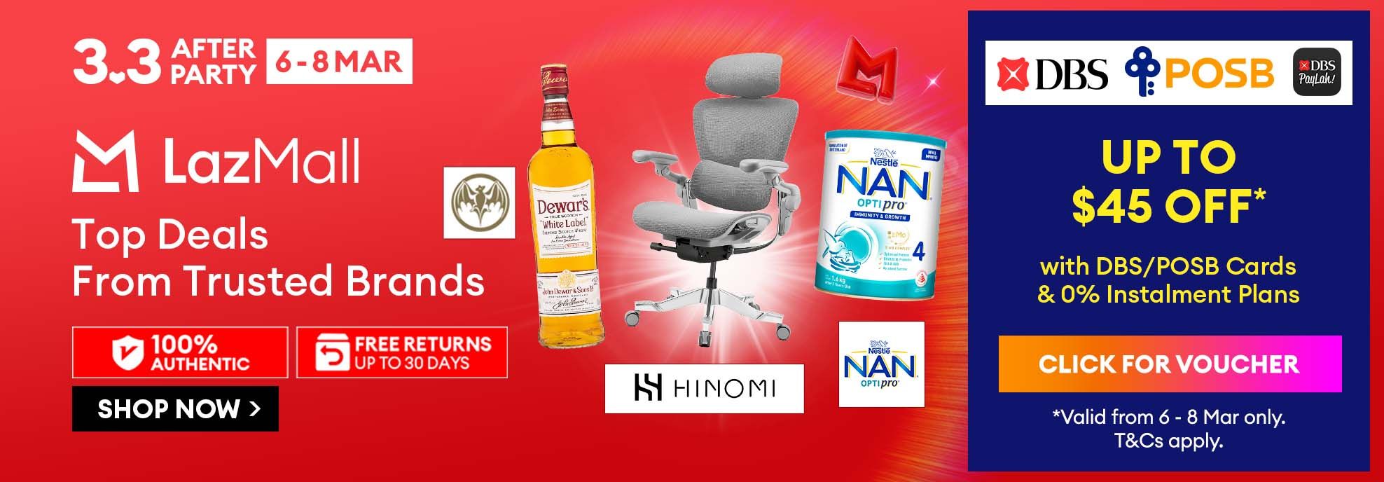 Check out gadget deals in Laz Tech Me Home and get the best deals on home furniture and accessories in Laz Home. We've also got all things halal from food and beverages at discounted prices when you browse the Halal Store. Want to get updated with our sale happenings? Make sure to always visit our Laz Calendar to look over our list of sale events so you won't miss out on any. Lastly, scan through Voucher page to earn cashback, bank promotions, platform, store and seller vouchers, free shipping and so much more. Lazada offers daily for attractive deals on your favorite items. Buy more and save more when you collect and stack multiple vouchers to make the most savings for your shopping. Scoop up incredible deals during our campaign periods including LazMall Brand Fiesta, Online Tech Show, Birthday Sale, Great Singapore Sale, 9.9, 10.10 and Lazada’s most anticipated online shopping festivals: 11.11 and 12.12 Sales!