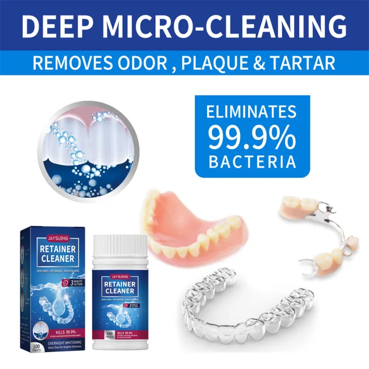 Denture Cleaning Tablet Powerful Fight Plaque And Stains Remove Bacteria Deep Cleaning Oral Cleaning Effective Cleaning Tartar#1 Box * Cleaning Sheet