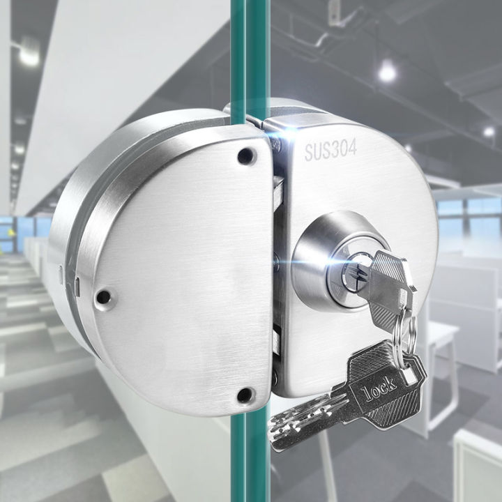 Double Open Glass Door Lock Stainless Steel Double Bolt Sliding Door Lock 10-12mm Office Glass Safety Door Lock with 3 Keys